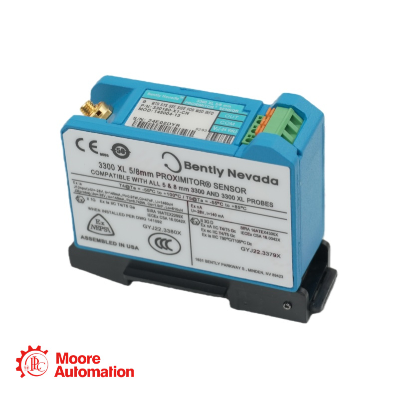 330180-X1-CN MOD:145193-01 is a 3300 XL Proximitor Sensor, with a non‑standard length and mounting configuration (X1), China‑specific agency approval/marking (CN). |