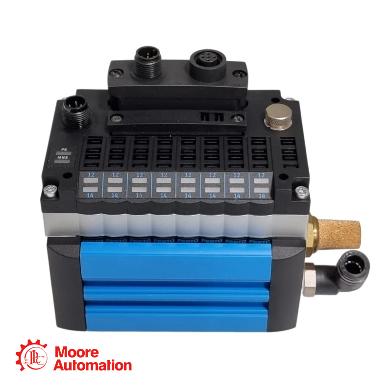 The CPV10-GE-DI02-8 is a compact pneumatic valve terminal with an integrated PROFIBUS DP fieldbus node. It provides a direct connection between a PROFIBUS master (e.g., Siemens SIMATIC S7) and pneumatic actuators. The "DI02" designation indicates it uses the extended CP protocol (Version B) and serves as a CPI Master, allowing additional I/O modules (input/output modules or further valve terminals) to be daisy-chained via the CPI expansion port. This model features 8 solenoid coil outputs (typically controlling 4 double-acting or 8 single-acting positions). |