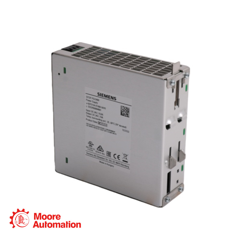 It is a DIN-rail mounted, 24 V DC power supply unit (PSU) from Siemens' SITOP series. It provides a regulated and isolated 24 V DC output with a rated current of 10 A (up to 12.5 A peak).